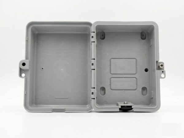 - Manufactured to endure inclement outdoor environments, this single port housing offers base knock-out with rubber grommet, a hidden hinge and pre-moulded extended legs.
